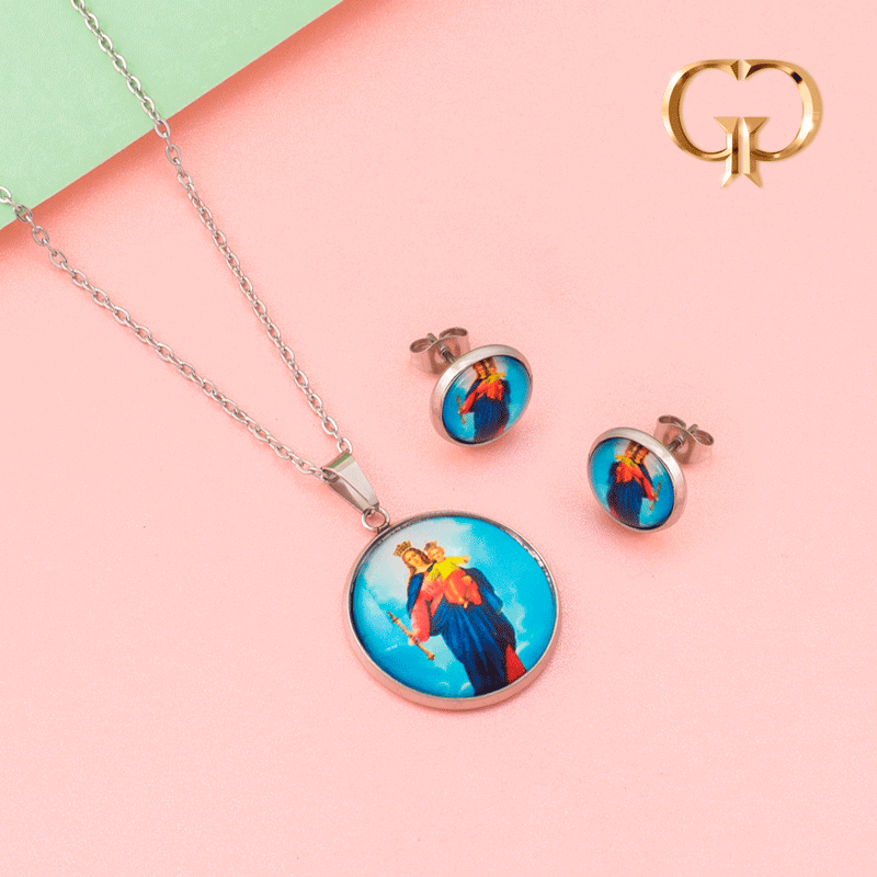 J403 - JUEGO ACERO IMAGEN VIRGEN DEL CARMEN