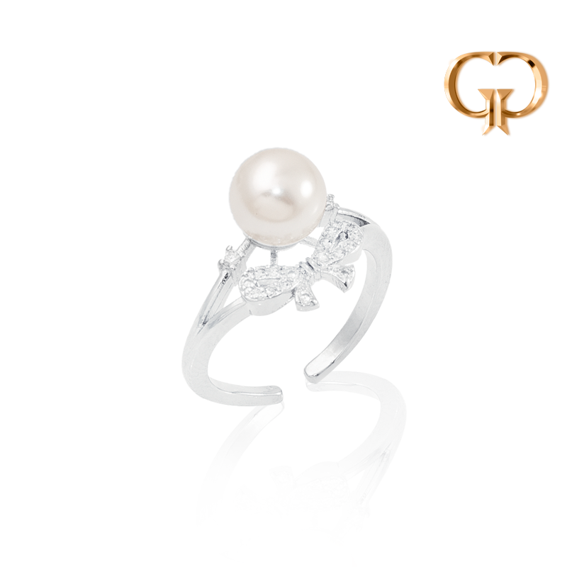 ANILLO MOÑO EN MICROZIRCONES Y PERLA AJUSTABLE, COVER GOLD