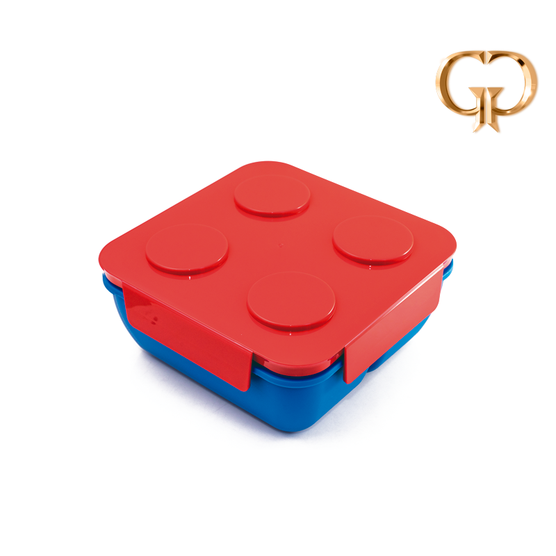 PORTACOMIDAS 2 COMPARTIMENTOS, PLASTICO LEGO, CUCHARA TENEDOR, 17X17 CM