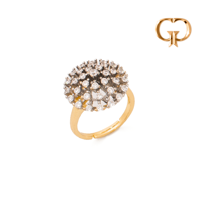 A226 - ANILLO BICOLOR MICROZIRCONES, AJUSTABLE EN COVER GOLD