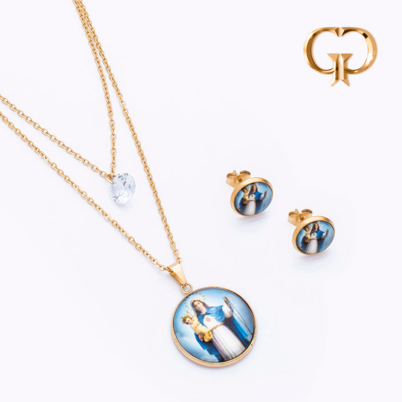 JUEGO ACERO CON ZIRCONCITO VIRGEN DEL CARMEN