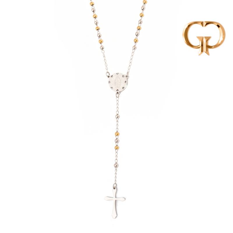 P1022 - ROSARIO ACERO BICOLOR CRUCERO VIRGENCITA CORAZONES