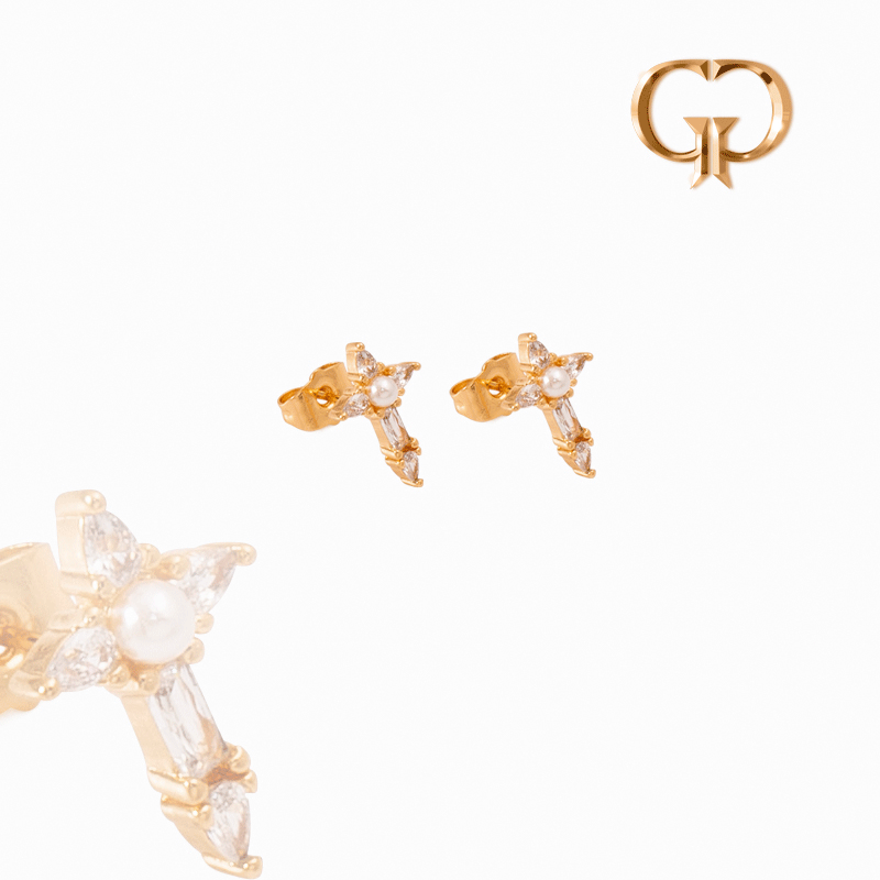 TOPO CRUZ EN ZIRCONES Y PERLA COVER GOLD
