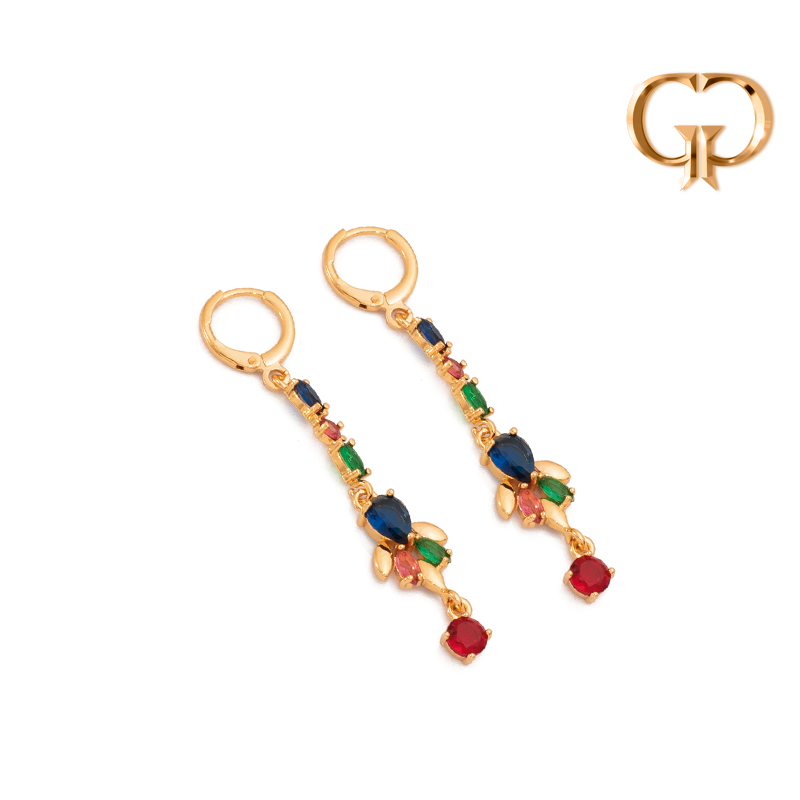Z2039 - ARETE DELUXE LARGO ZIRCONES DE COLORES , COVER GOLD
