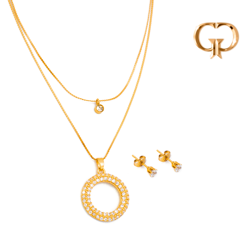 J1223 - JUEGO ACERO CADENA DOS VUELTAS ZIRCULO EN MICROZIRCONES