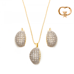 J1320 - JUEGO BICOLOR BOMBACHODE MICROZIRCONES,ARETE ESPAÑOL, RODIO