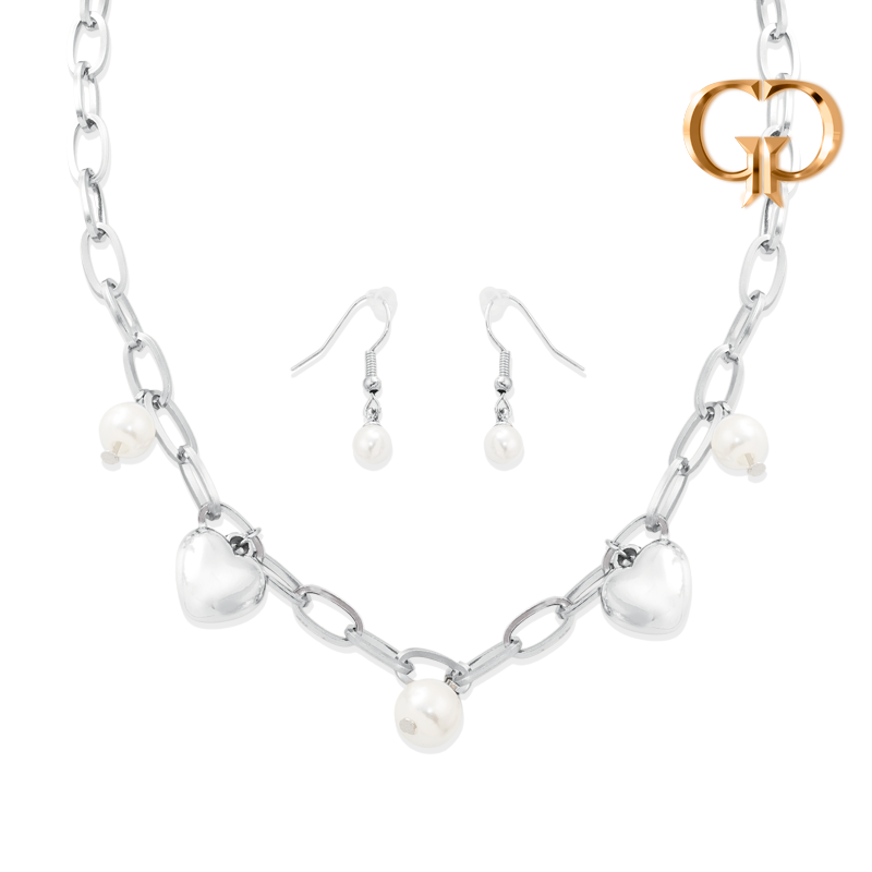 J1427 - JUEGO ACERO PERLAS Y CORAZONES