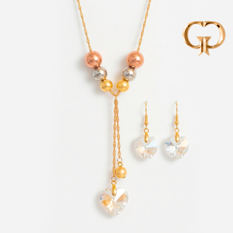 J1465 - JUEGO BOLAS 3 TONOS DIJE CORAZON DE CRISTAL, COVER GOLD