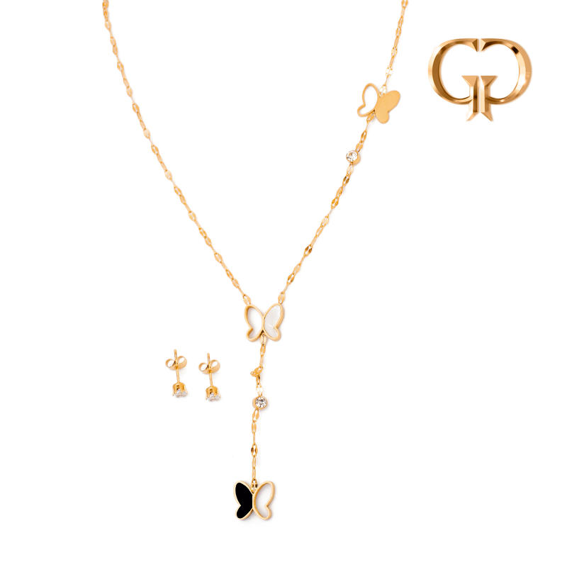 JUEGO ACERO MARIPOSAS DECORADO NACAR