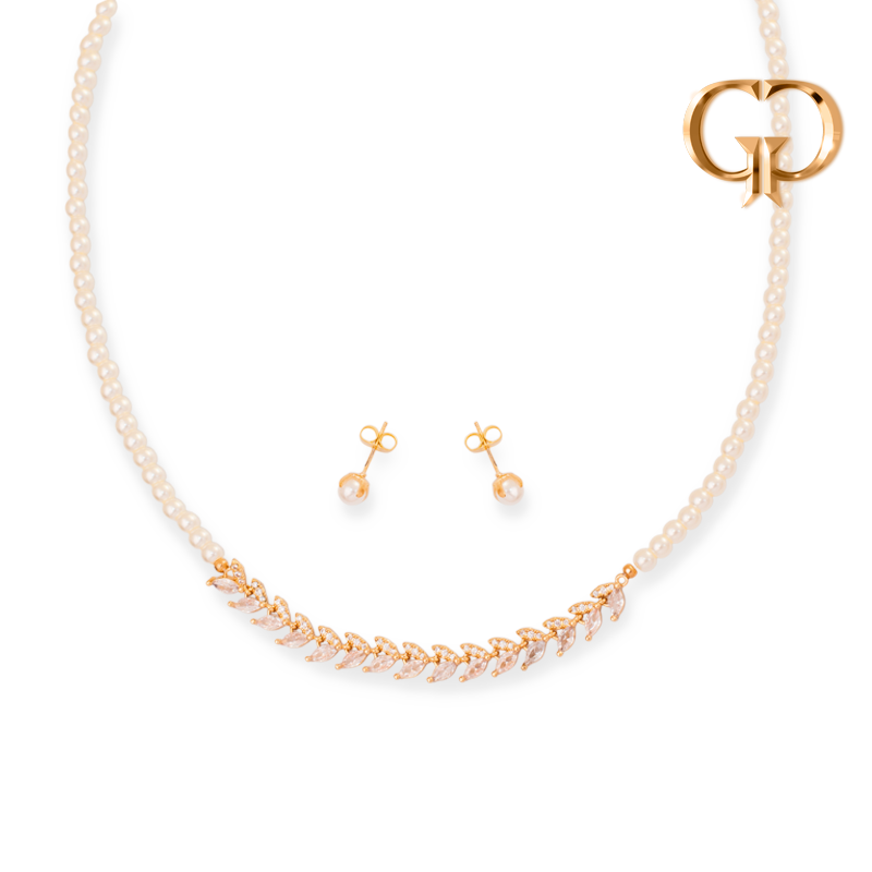 JUEGO CADENA DE PERLAS Y HOJAS EN ZIRCONES, COVER GOLD