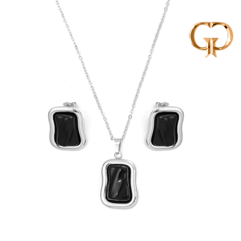 J1827 - JUEGO ACERO PLACA Y PIEDRA ONIX
