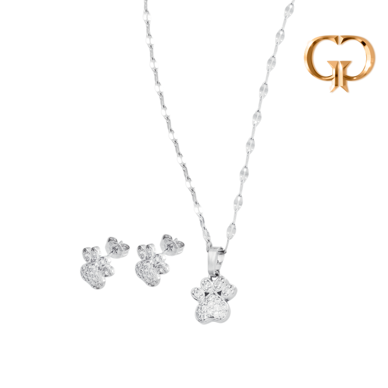 J1859 - JUEGO ESPECIAL MICROZIRCONES, COVER GOLD, CADENA ACERO, HUELLITA