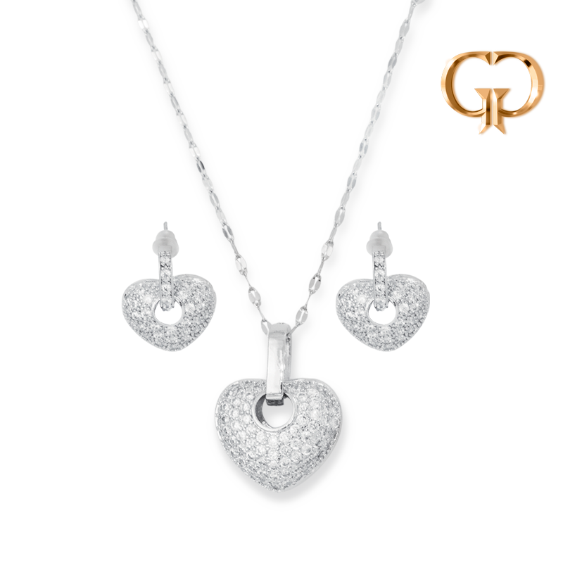 J2036 - JUEGO CANDADO DE CORAZON DE FUEGO BOMBACHO MICROZIRCONES, COVER GOLD