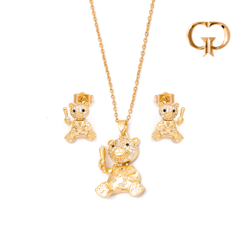 J2043 - JUEGO OSO MICROZIRCONES, COVER GOLD
