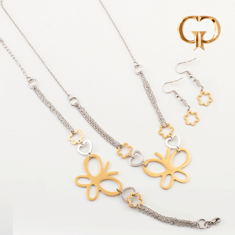 JUEGO ACERO MARIPOSA Y CORAZONES 3 PIEZAS