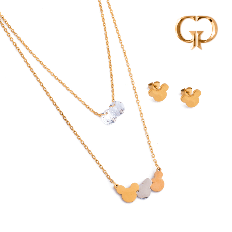 JUEGO ACERO MICKY EN 3 TONOS Y ZIRCON
