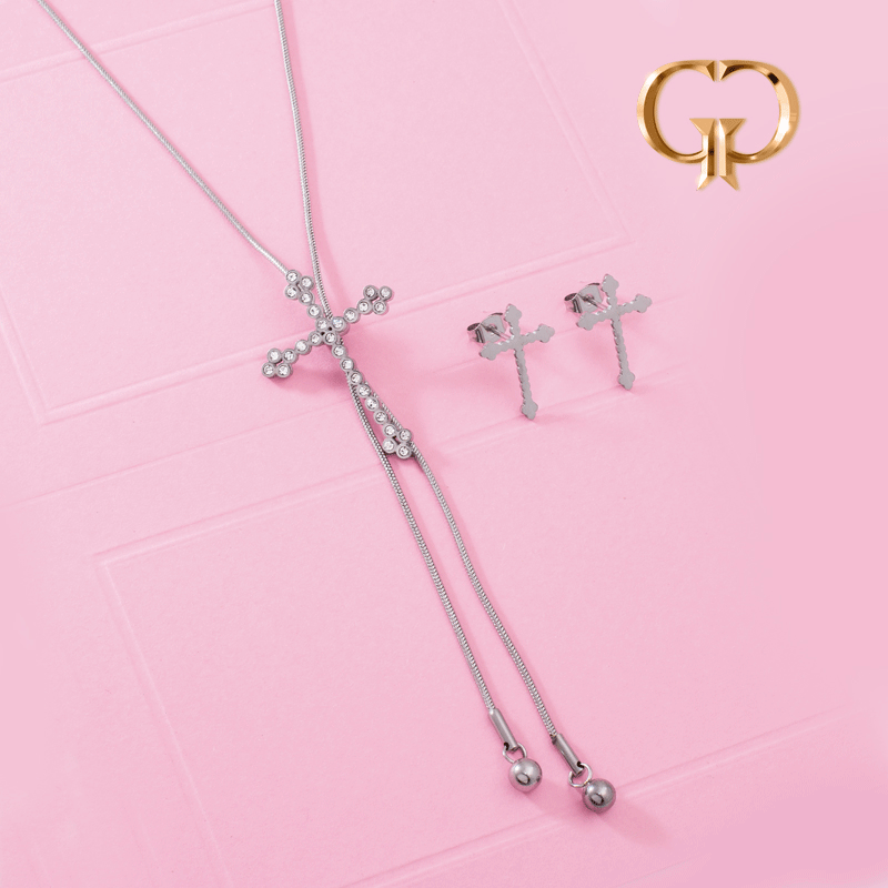 JUEGO ACERO CORVATERO AJUSTABLE CRUZ EN ZIRCONES