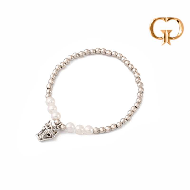 P750 - PULSERA ELASTICA BALINES DIJE JAGUAR EN MICROZIRCONES, COVER GOLD