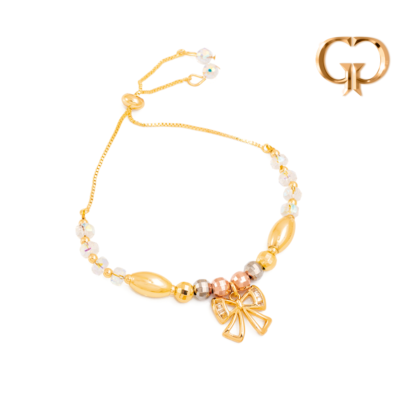 PULSERA BOLAS OVALADAS Y MURANOS DIJE MOÑO AJUSTABLE, COVER GOLD