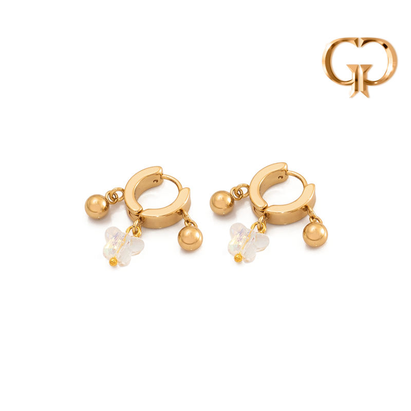 Z178-1 - CANDONGA ACERO DORADO HUGGIES DIJES BOLITAS Y MARIPOSA EN CRISTAL