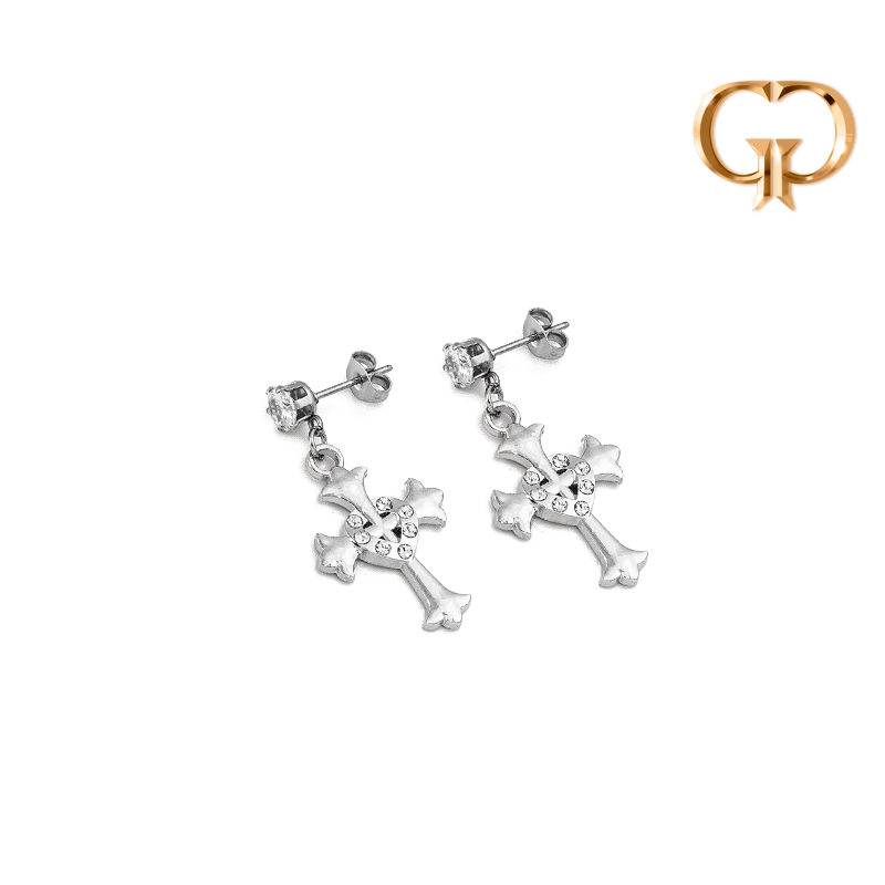 Z2543 - ARETE CRUZ Y CORAZON EN ZIRCONES , COVER GOLD