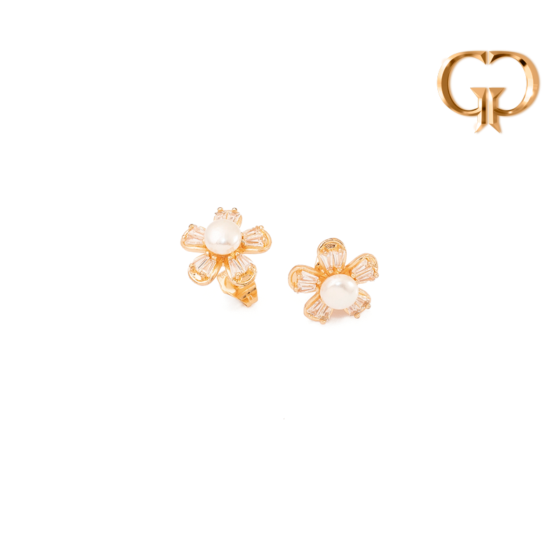 TOPO FLOR EN ZIRCONES BAGUETTE Y PERLA DE RIO