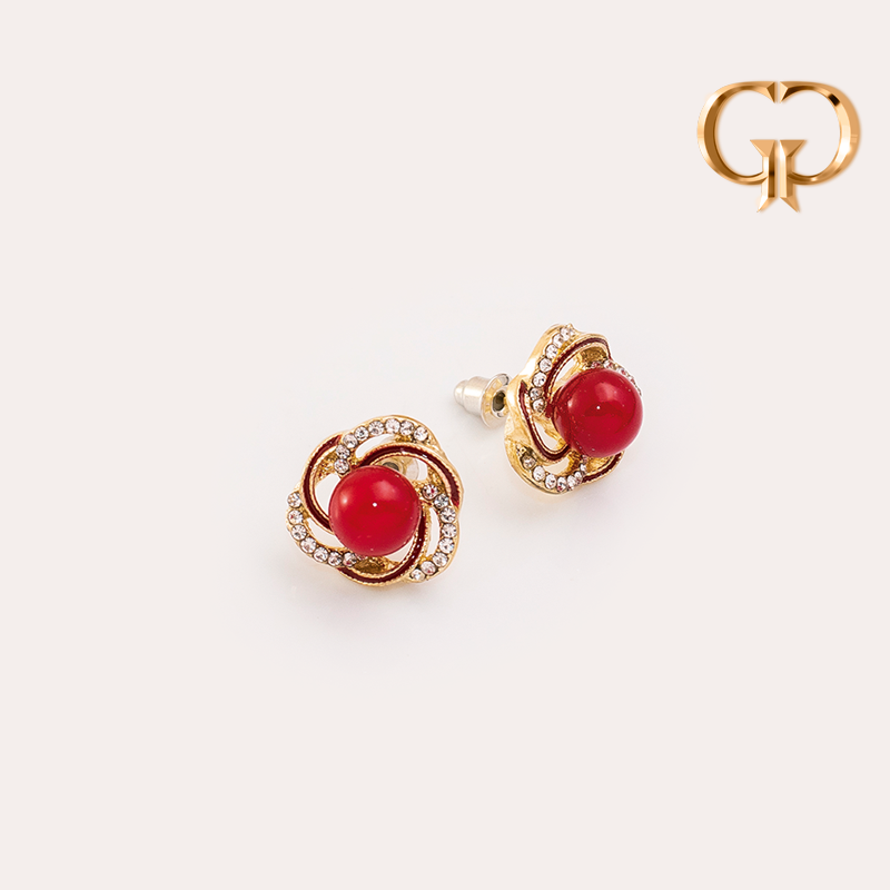 TOPO ZIRCONES Y PERLA ROJA , COVER GOLD