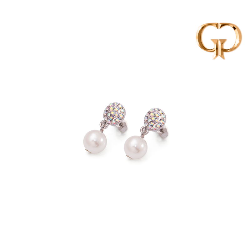 TOPO CIRCULO EN ZIRCONES Y PERLA LAMINADO DE PLATA