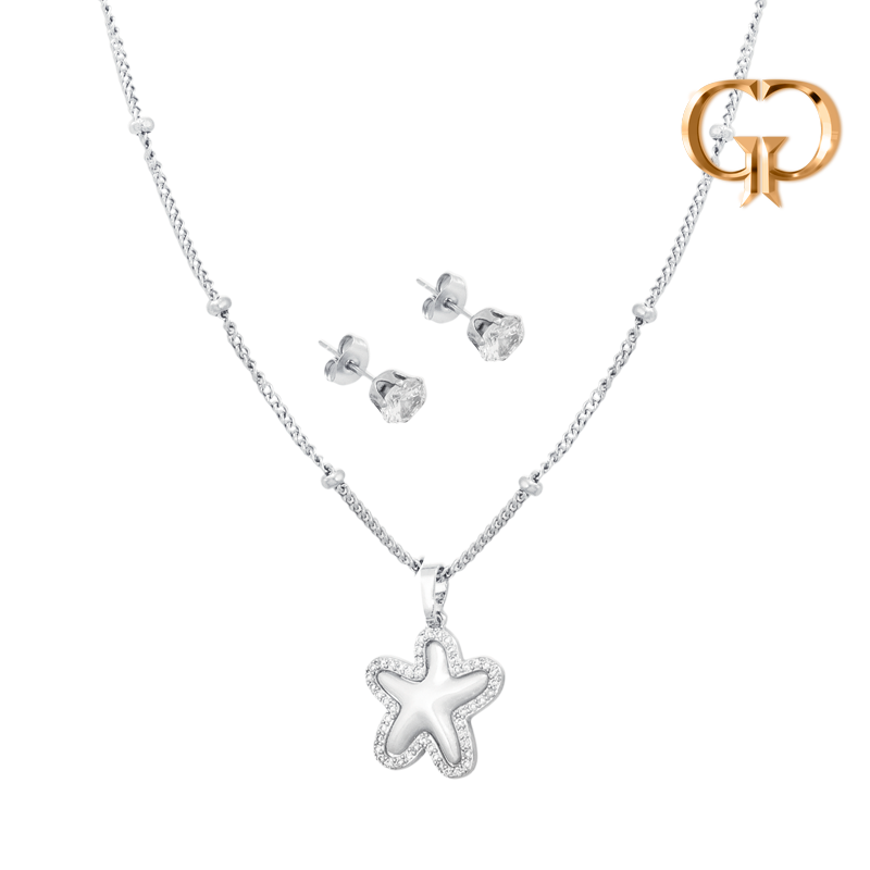 J1403-1 - JUEGO COVER GOLD ESTTRELLA DE MAR CON ZIRCONES ,