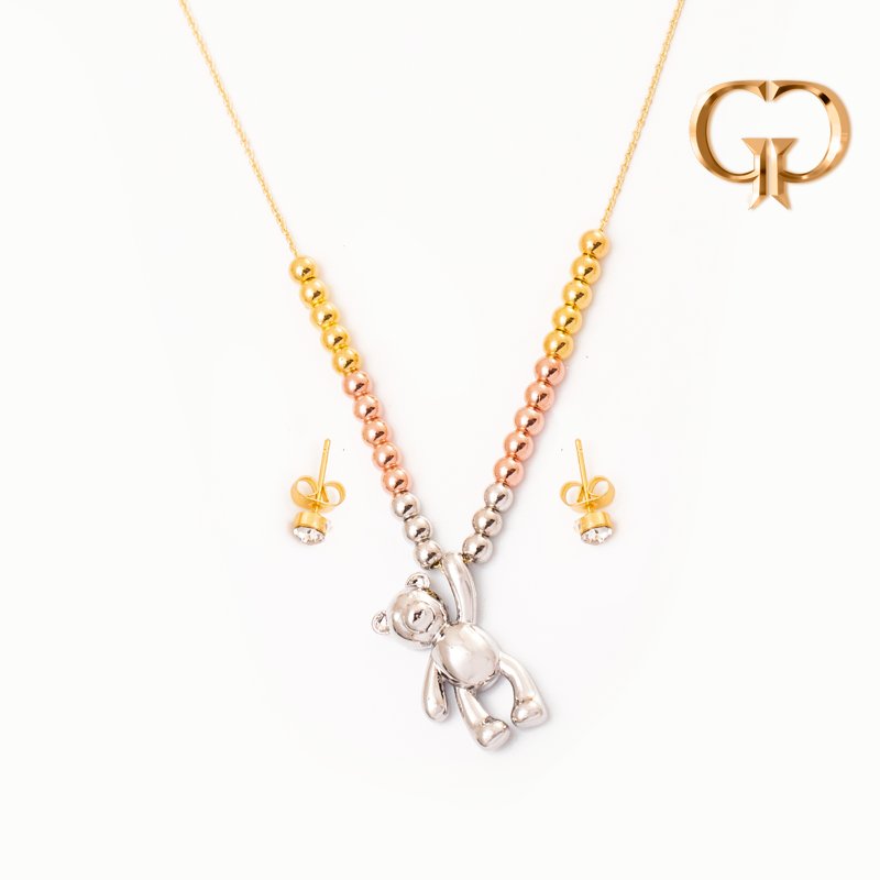 J1577 - JUEGO OSITO BALINES 3 TONOS , LAMINADO ORO