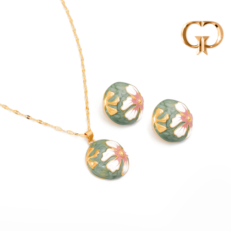JUEGO ACERO FLORES DECORADAS RESINA