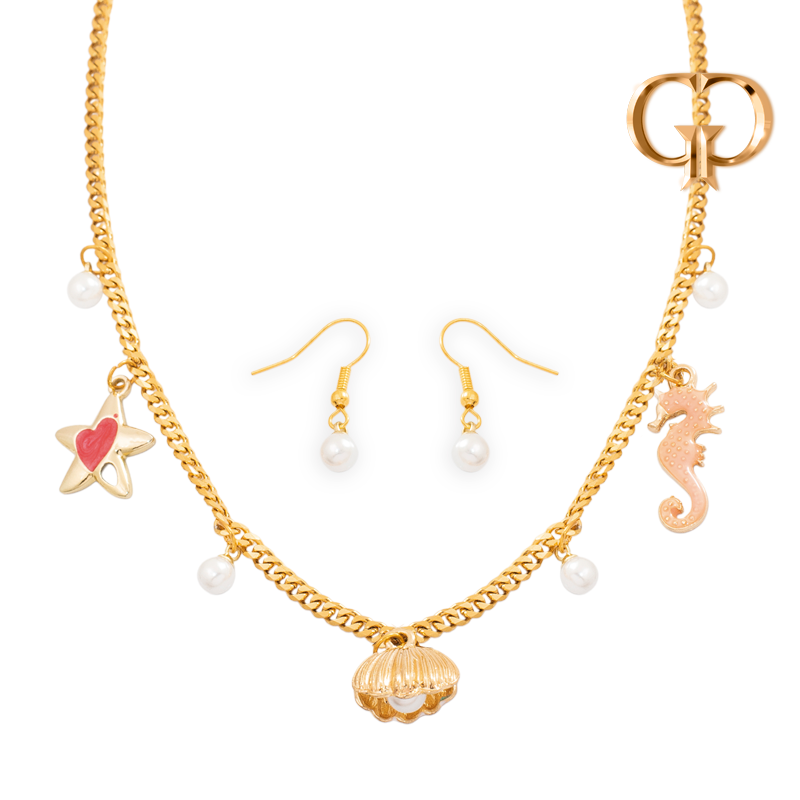 JUEGO ACERO MAR PERLAS CONCHAS Y ESTRELLAS ,