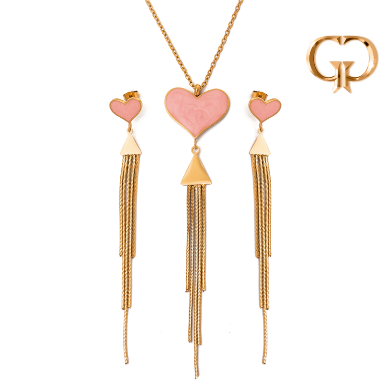 JUEGO ACERO CORAZON ROSADO Y TIRAS ,