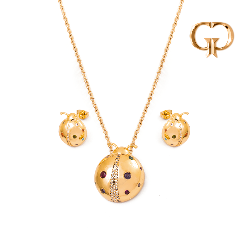 JUEGO MARIQUITA GRANDE CON ZIRCONES DE COLORES , RODIO