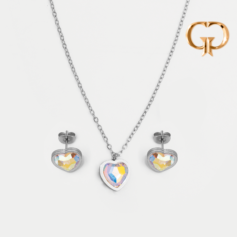 J2122 - JUEGO ACERO CORAZON PIEDRA BOREAL