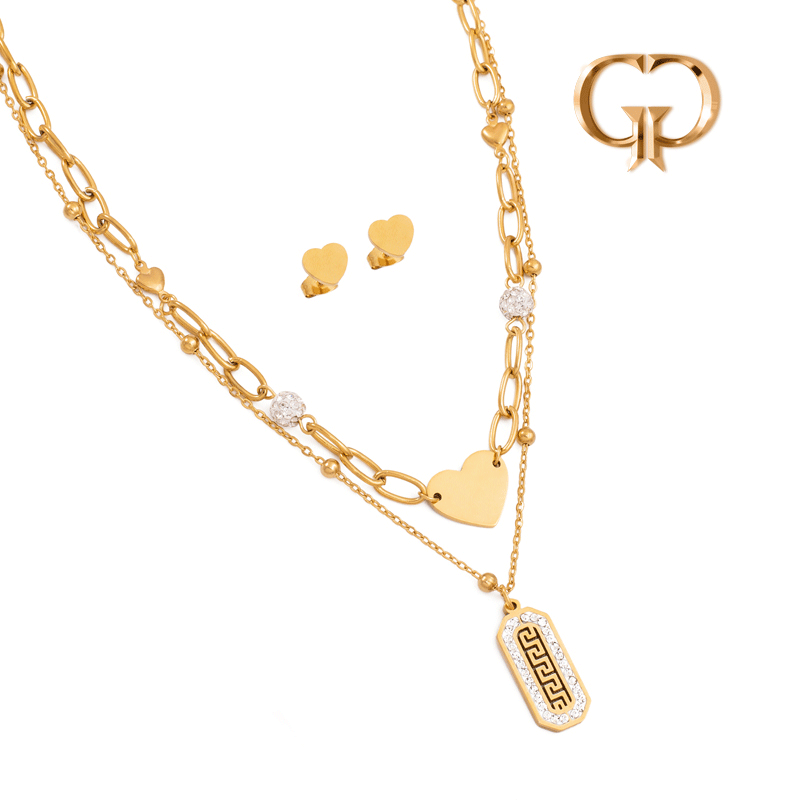 JUEGO ACERO BOLAS DE FUEGO CORAZONES Y PLACA EN ZIRCONES