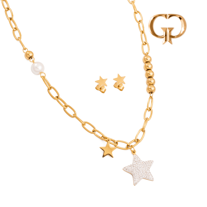 JUEGO ACERO ESTRELLA EN MICROZIRCONES PERLA