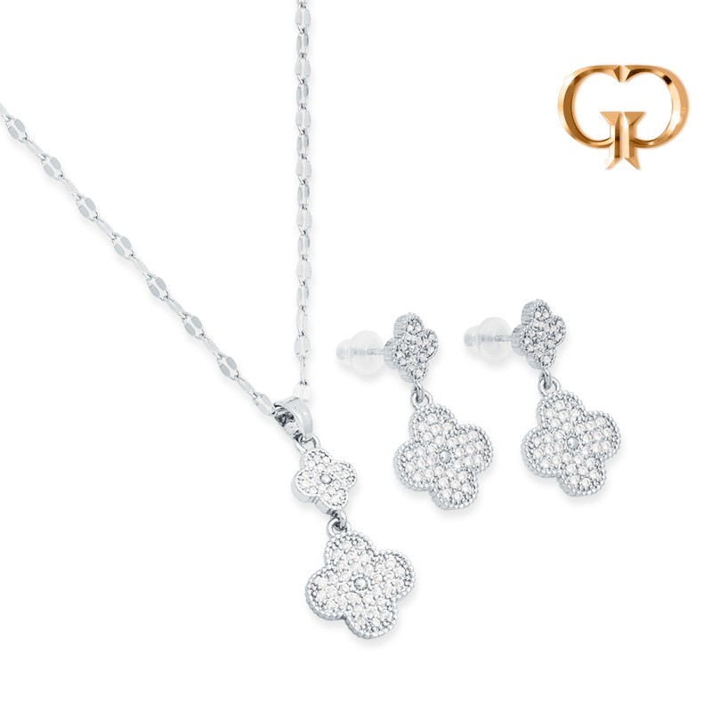 JUEGO FLOR MICROZIRCONES LARGO COVER GOLD
