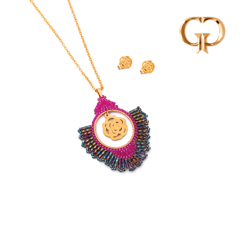ZJ1122 - JUEGO ACERO ROSA DECORADO TEJIDO MIYUQUY