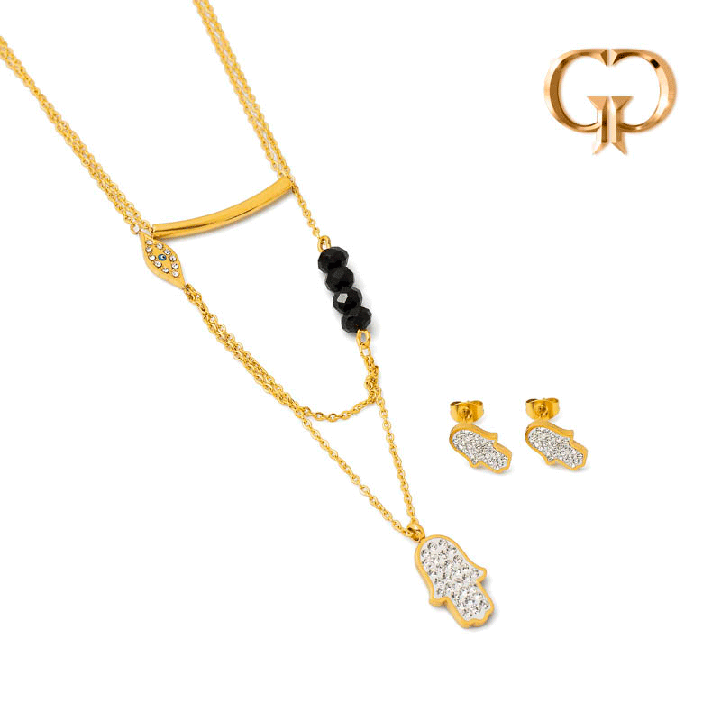 ZJ1761 - JUEGO ACERO MANO DE DIOS MICROZIRCONES Y MURANOS NEGROS