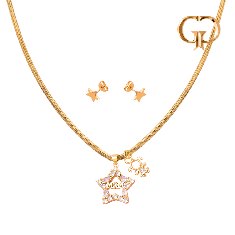 J1166 - JUEGO MAMA ESTRELLA EN ZIRCONES CADENA ESPECIAL , COVER GOLD