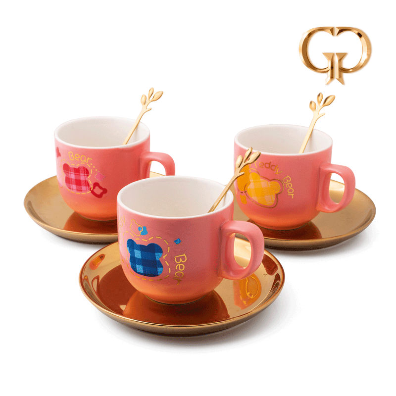 ACC398 - POSILLO CERAMICO CON PLATO Y CUCHARITA OSOS 4 MOTIVOS LLEGA CUALQUIERA