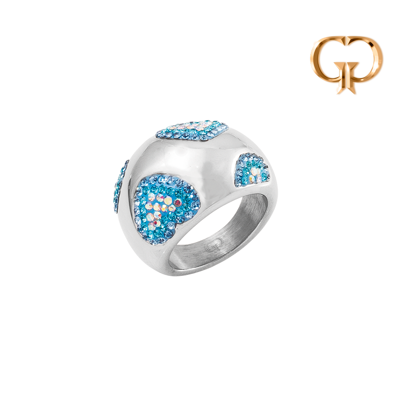 ANILLO ACERO ESPECIAL , BOMBACHO CORAZONES EN MICROZIRCONES DE COLORES
