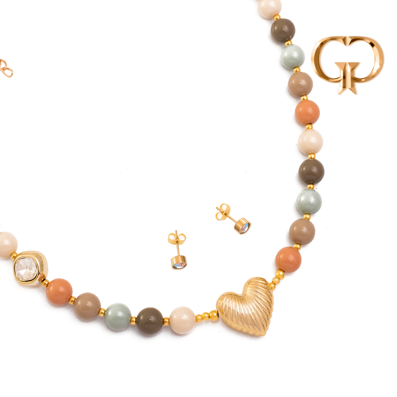 JUEGO BICOLOR CORAZON RELICARIO EN MICROZIRCONES