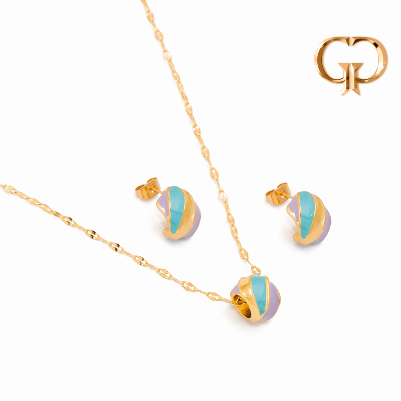 J1638 - JUEGO FIGURA RETORCIDA EN COLORES RESINADOS LILA Y AGUAMARINA , COVER GOLD