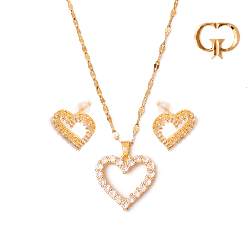 J2027 - JUEGO CORAZON DE ZIRCONES , COVEER GOLD