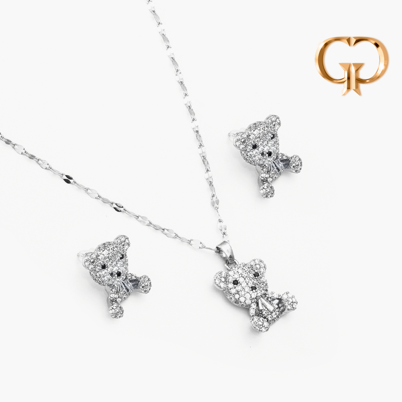 J600-24 - JUEGO OSITO PLATEADO EN MICROZIRCONES DELUXE COVER GOLD
