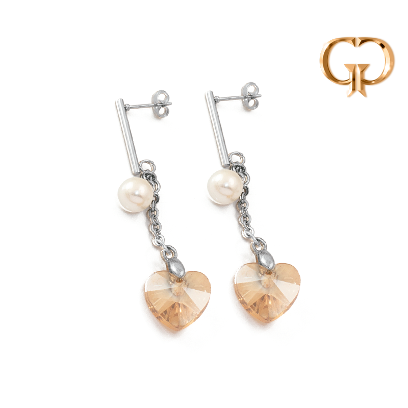 JE16 - ARETE LARGO ACERO , CORAZON AMBAR
