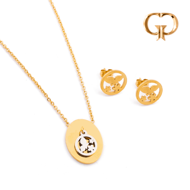 ZJ1794 - JUEGO ACERO BICOLOR MARIPOSA Y FLORES