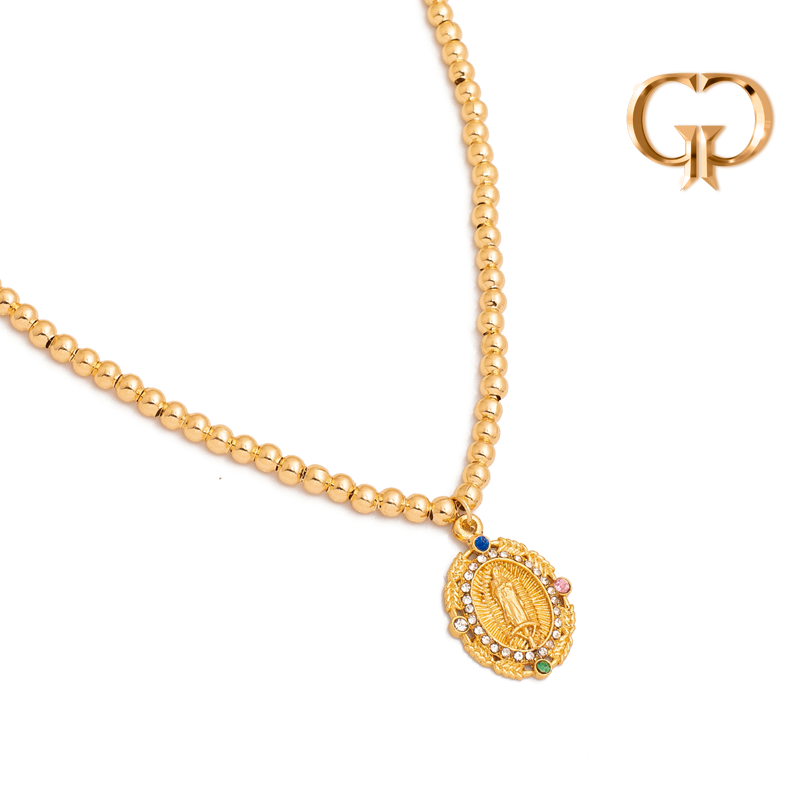 CADENA BOLAS DIJE VIRGENCITA MICROZIRCONES DE COLORES , COVER GOLD